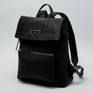 가죽을 배색하고 상단에 오각형의 로고 장식을 매치하여 포인트를 준 백팩입니다.