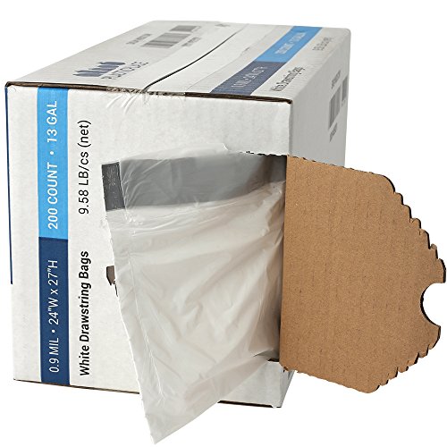 Plasticplace 13 Gallon Drawstring Bags, 0.9 Mil, White, 200 / Case