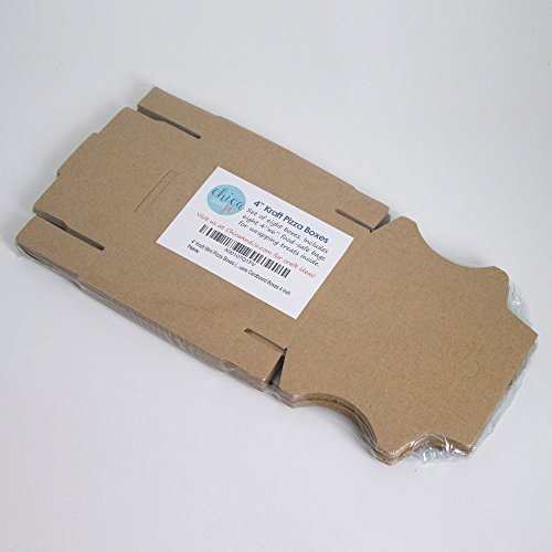 4" KRAFT MINI PIZZA BOXES (PACK OF 8) - CHICA AND JO BRAND - SQUARE CARDBOARD BOXES 4 INCH - INCLUDES 4"X6" PLASTIC TREAT BAGS