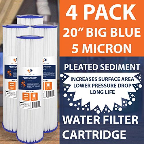 4-PACK Of 5 Micron Big Blue 20" x 4.5" Pleated Washable Sediment Water Filter Cartridge by Aquaboon