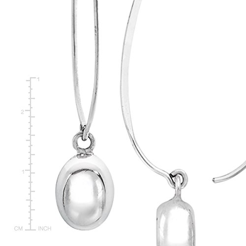 These Wire Drop earrings feature French wire drops and an oval pendant in sterling silver. Earrings measure 2 1/4 by 1 inches, finished with ear-wire back-findings. Piece comes with a ".925" sterling silver stamp as a symbol of guaranteed product quality.