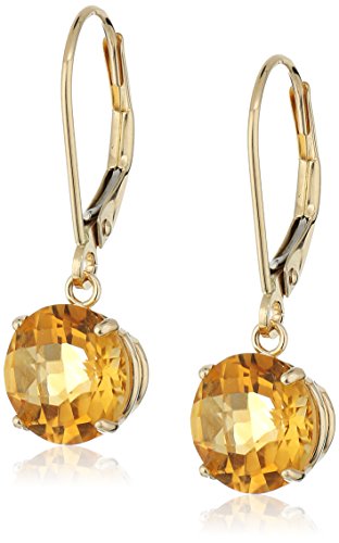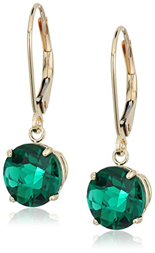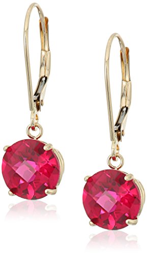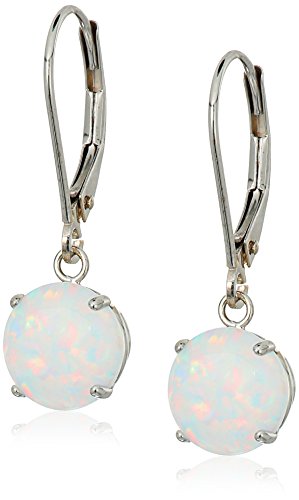 10k Yellow Gold Round Checkerboard Cut Simulated Opal Lever back Earrings (8mm)