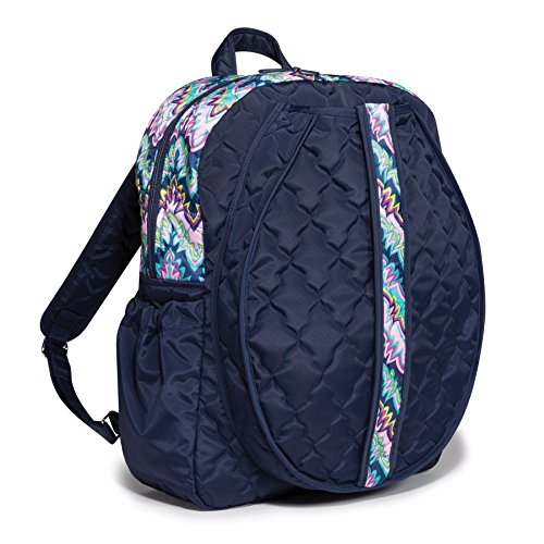 Studio : Cinda b. Publisher : Cinda b. Binding : Apparel Product Description Cinda b's tennis backpack is the perfect way to haul all your gear in style on and off the court. First of all, it has great design elements that make it easy to transition from tennis whites to your favorite casual wear without missing a beat so you'll always look fresh and pulled together. Fabulous looks aside, the tennis backpack is super functional. The front zip pocket holds 2 standard-sized racquets, 2 handy side pockets keep water and tennis balls close at hand and the spacious interior features 3 slip pockets and plenty of room for a change of clothes, shoes and your favorite cinda b accessories. It measures 17" x 13.5" x 4.5" and has lightly padded adjustable backpack straps to keep you comfortably hands-free when accepting any and all trophies (or cold beverages) after your match. The tennis backpack is fashioned from a lightly padded, quilted nylon and polyester fabric that is water resistant, stain resistant, 100 percent machine washable, surprisingly lightweight and extremely durable. Even if your tennis game doesn't turn heads your cinda b tennis backpack certainly will! About cinda b: after running a successful interior design business in Atlanta, cinda found it difficult to find a fully functional, stylish bag that was versatile enough for the modern woman's everyday life. As a result, the cinda b brand was created. For cinda b, it's important to produce American handbags and create American jobs. Teaming up with one of the most experienced, well-known sewing companies in the country, each and every cinda b product is proudly made in the usa. Cinda b offers a variety of pattern options that combine bold and unique modern prints with effortless functionality. The cinda b family invites busy women everywhere to discover their beautiful collections of handbags, travel bags and accessories available on amazon. 0