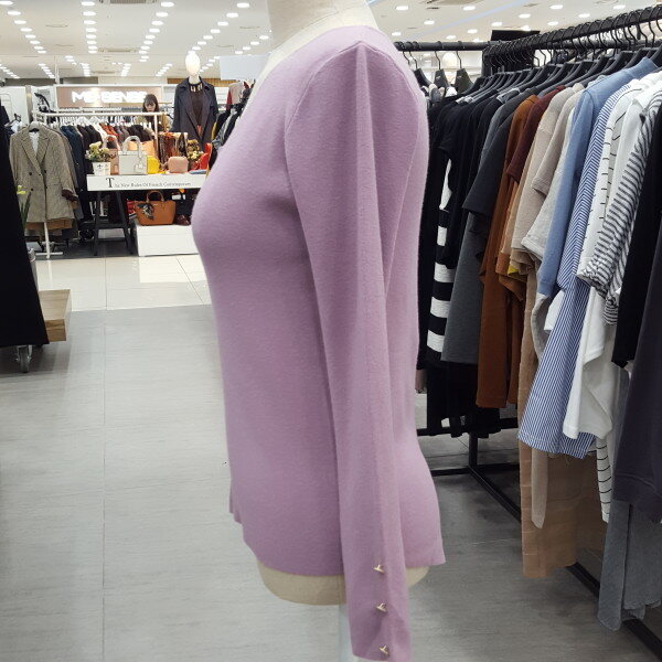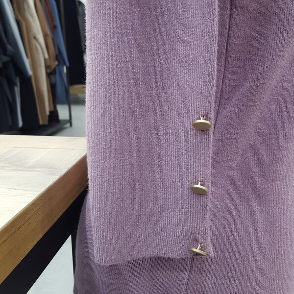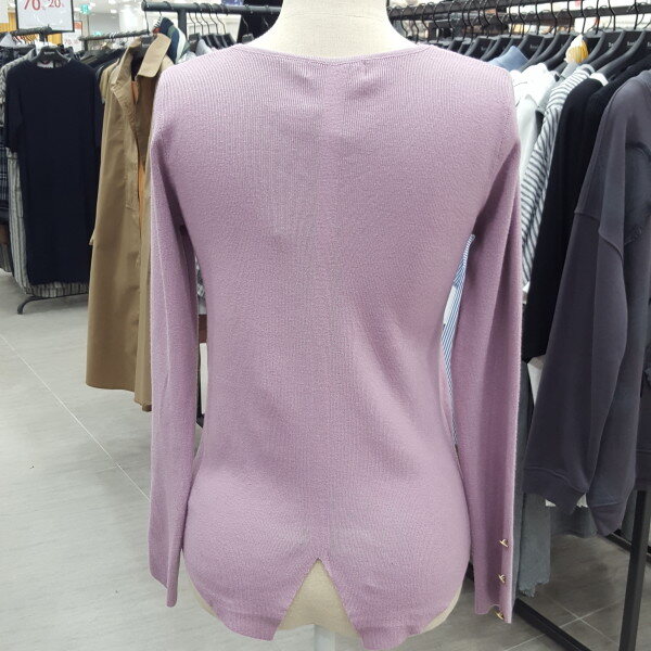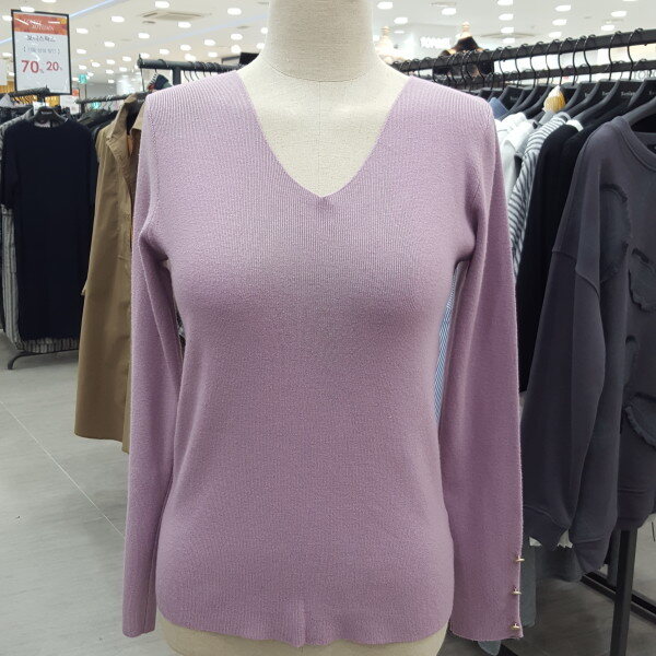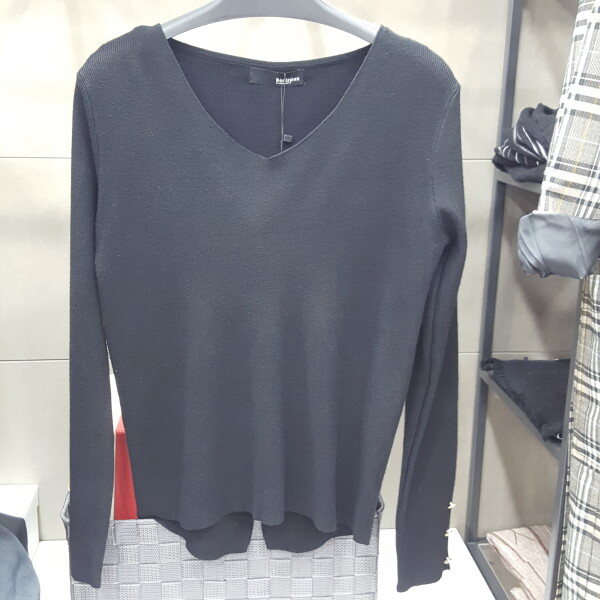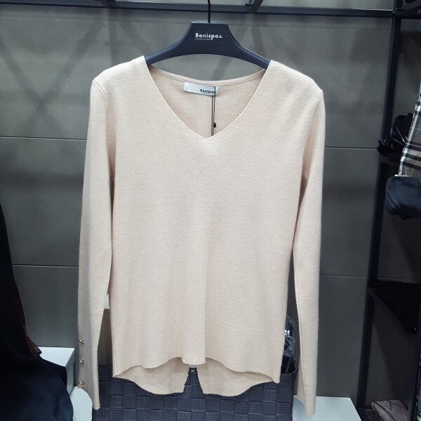 브이넥 라인에 적당히 두께감에 브드러운소재.뒤 밑단 트임포인트와 소매버튼장식.