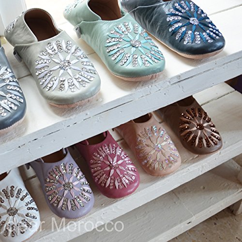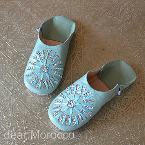 -. Binding : Apparel -. Brand : Dear Morocco -. Department : womens -. Feature : Babouche is traditional Moroccan slipper made by hand with natural materials. There are about one hundred million sheep in Morocco. Sheep is used for food and products with wool and leather. Morocco has long history of tanning and still keep doing very traditional way of vegetable tanning. We choose the best leather that is very soft and smooth. Sabra is natural fiber made of cactus. It is elegantly shinny and strong like silk. We use sabra for embroidery. -. ProductGroup : Shoes -. ProductTypeName : SHOES -. Title : BABOUCHE SPANGLE // Dear Morocco // sheepskin slippers