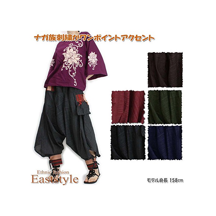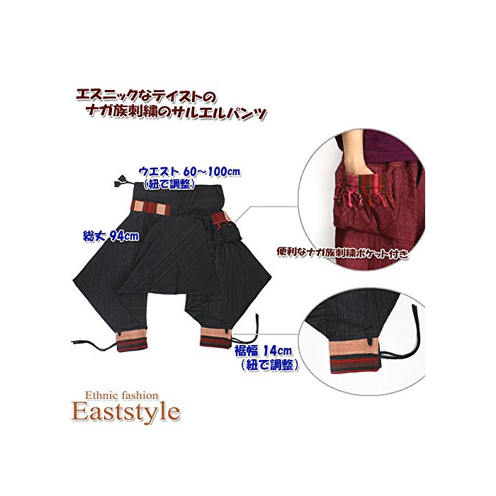 웨스트나 발목은 끈에 조정하는 타입이 되고 있습니다.《나가》족 자수는 1 점1점이 다른 디자인이 되고 있습니다.게재 사진은 일례에,실제의 상품과 무늬가 약간 다른 것을 양해 바랍니다.