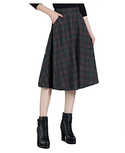 -. Feature : メイン素材: 30%ウール&70%ポリエステル / 良い厚み、伸縮性、通気性、快適性 / 古典的なチェック柄は時代遅れになることはありません / ラインの綺麗なロングスカート。ふんわりと広がるフレアーが可愛い。ロング丈と落ち着いたカラーが女性らしさをアップします / 購入前にサイズチャートをお読みください