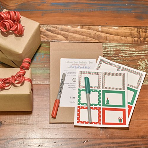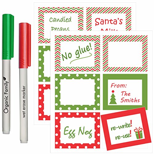 Holiday Reusable Labels - 12 Christmas Vinyl Cling Stickers for Glass, Ceramic, Metal, Plastic - They Stick with No Glue - Re-Write with Wet Erase Markers Included - Tag Gifts, Jars, Pitchers & More