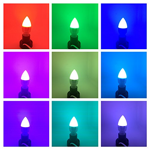 LJY 2-Pack E12 Candelabra 3W RGB LED Light Remote Control Color Changing Candle Lamp Bulbs AC 110V