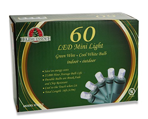 HOLIDAY ESSENCE 60 LED MINI WHITE CLEAR BULBS WITH GREEN STRING CHASING LIGHTS