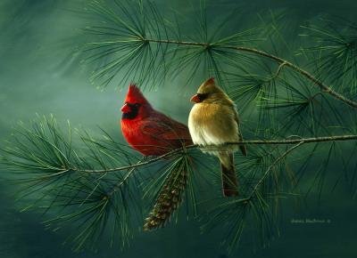 Tuftop Tempered Glass Kitchen Board, Artist Collection - Cardinals & White Pine Medium