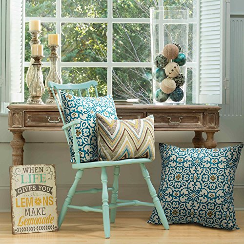Aqua and maize come together on this refined quatrefoil-style pillow. Perfect for the sophisticated, modern home, our plush throw pillow will delight from corner to well-crafted corner. The cheery blue hue will delight for years to come.