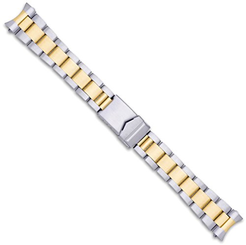 -. Title : Oyster Style Link Metal Watch Band - Two Tone - 18mm