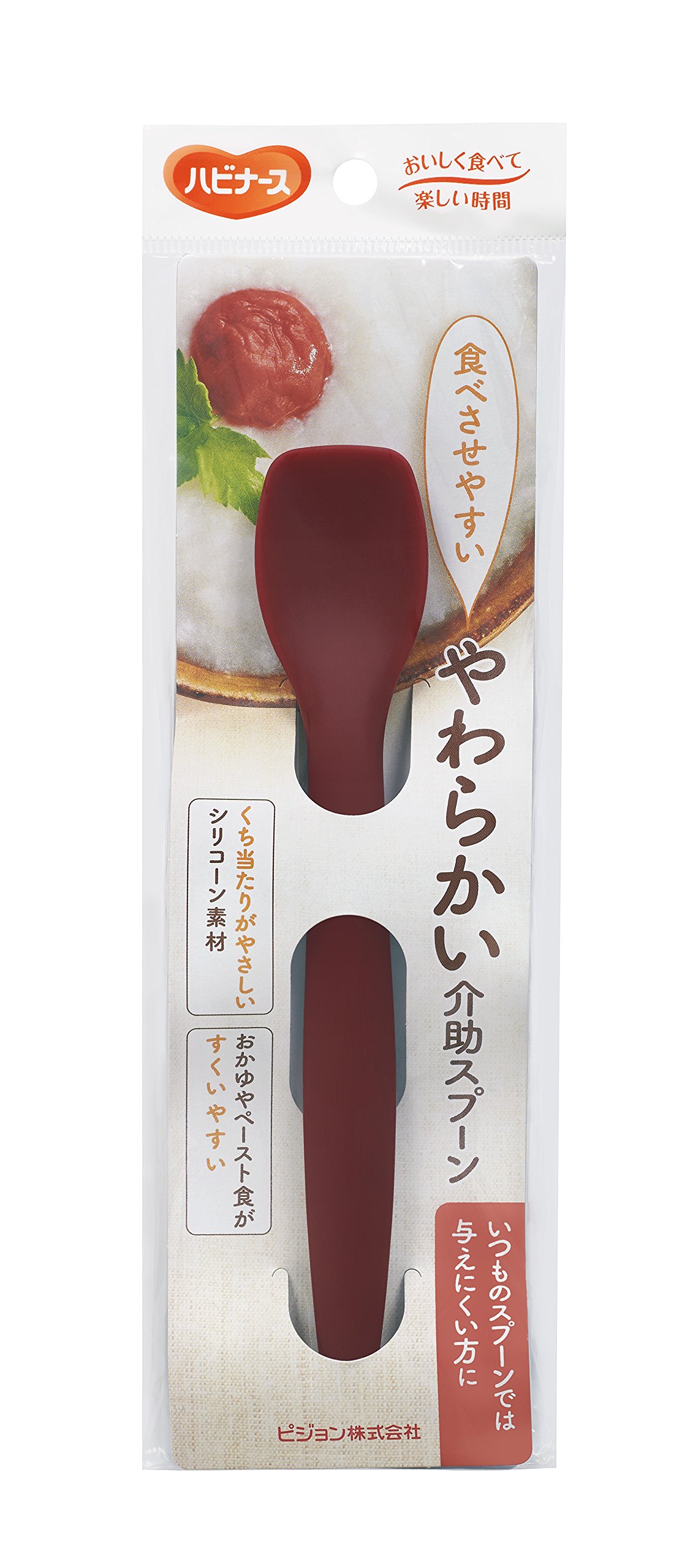 "Habiners Soft Assisting Spoon Maroon" is a soft spoon for a person who needs assistance when eating.