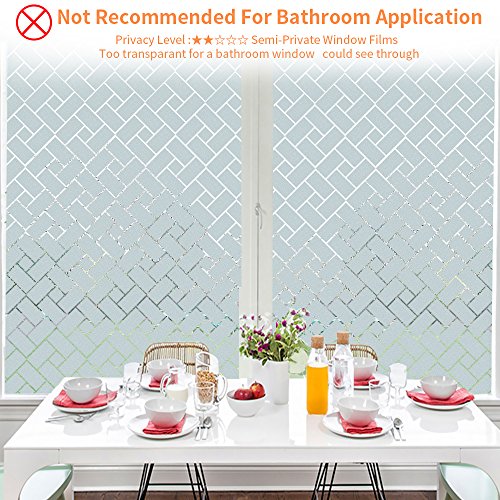 - ✔APPLICABILITY: The static cling window film applies to any smooth glass surface in minutes,it can be used for office,home,bathroom and bedroom.(Installation Video:https://www.youtube.com/watch?v=_lP0WHW74Qo&list=LL6ve0OX2X2ikEAvJAZToCEw)