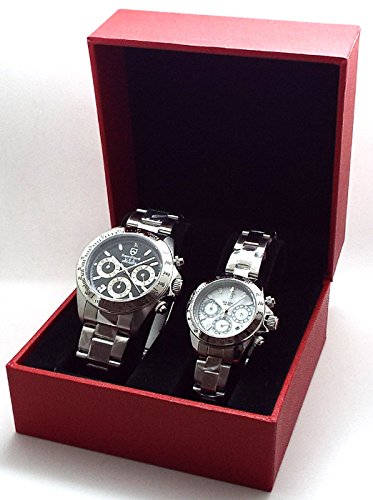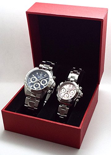 -. Feature : レディース&メンズのペアクロノグラフ (2本セット)メンズ直径約39mm レディース 直径約30mm / 共に10気圧防水 オールステンレス製BODY 3ツ折れ式バックル仕様 1ポイントダイヤモンド / 取扱説明書 ギャランティーカードそれぞれに付属 / ※クロノグラフ秒針の位置はメンズとレディースにより異なります 詳しくはそれぞれの説明書をご確認下さい。