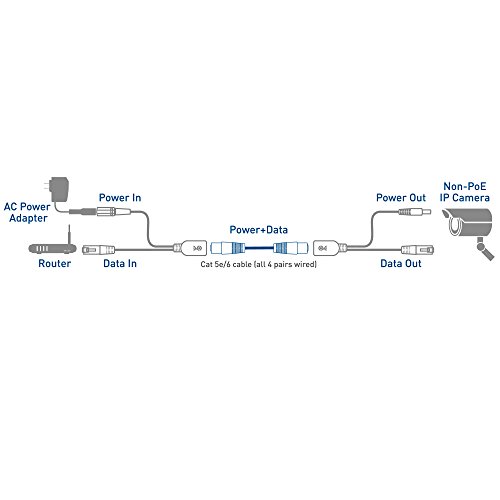 PASSIVE PoE INJECTOR KIT provides in line power over a Cat 5, 5e, 6 Ethernet network cable to an IP camera, IP phone, wireless access point and more; Enables non PoE equipped devices to be powered over a single network cable; Allows a more flexible position for an IP device