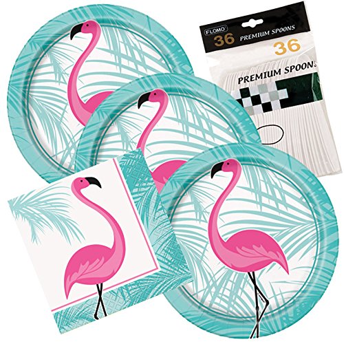 Pink Flamingo Party Themed Dessert Plates And Napkins includes Spoons Serves 32