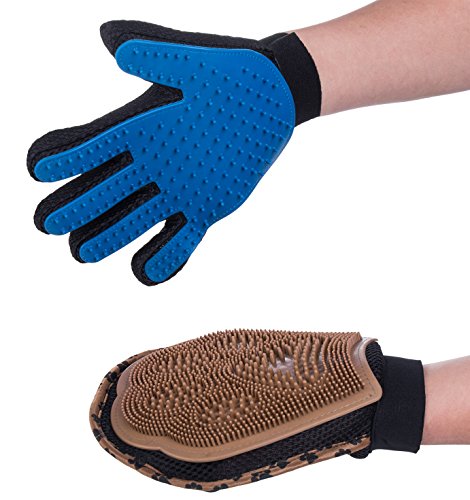 ?What You Get: Pay The Price For One And Get Two Pet Grooming Gloves. This set contains one right-handed Five Finger pet desheding glove and a 2-in-1 grooming glove.