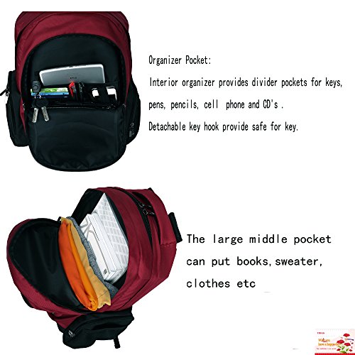 1. Large padded sleeve compartment for laptops of up to 16.5" inches and an extra pocket for iPads and Tablets 2. Secondary pocket to store books, magazines, folders, notebooks, etc. 3. Front media pocket with built-in headphone cord. 4. A compartment at the front of the bag with multiple divider pockets to store pens, business cards, keys, mini iPads, SmartPhone,and other necessary gadgets or accessories. 5. Left side pocket to store bottle and accessories. 6. Right side zipper pocket with breathable mesh to store water bottle and umbrella. 7. Adjustable HeatGear shoulder straps with mobile phone pocket which are heavily padded for comfort.