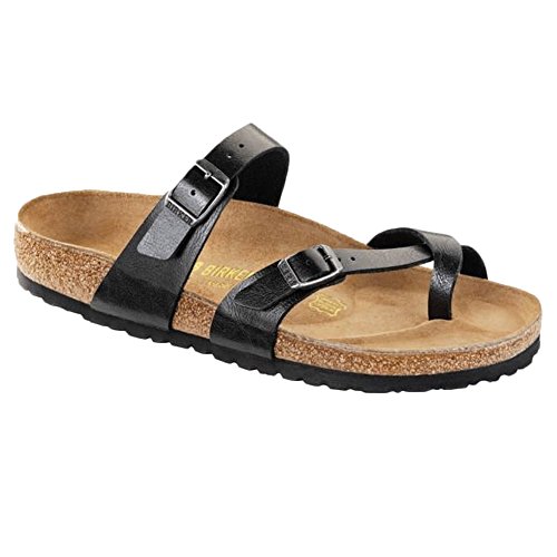 Studio : Birkenstock Publisher : Birkenstock Binding : Shoes Product Description FEATURES of the Birkenstock Women's Mayari Sandal Cork and latex footbed designed to mirror the shape of a healthy foot and provide a natural walking environment More toe room allowing toes to move naturally, which promotes better balance and correct foot alignment from toe to heel Raised toe bar encourages natural gripping motion of your feet, exercises the legs and stimulates circulation Contoured footbed ensures even weight distribution and proper posture Deep heel cup cradles the heel and keeps natural cushioning right under the calcaneous (also known as the heel bone) Shock absorbing sole is flexible, durable, lightweight, repairable and replaceable, like almost every part of our shoes Jute fibers made of two layers - one wicks away moisture, the other adds strength Cork footbed is firm and resilient for maximum support Footbed Liner made of soft suede keeps your feet comfortable and dry 0