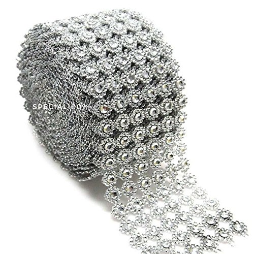 Silver Mesh Ribbon Flower Shape Rhinestone Ribbon Mesh Wrap Roll Diamond Bling Mesh for Wedding Decorations, Wedding Cake, Birthdays, Party Supplies, Arts & Crafts, 4" x 10 yards (30 ft) 1 Roll