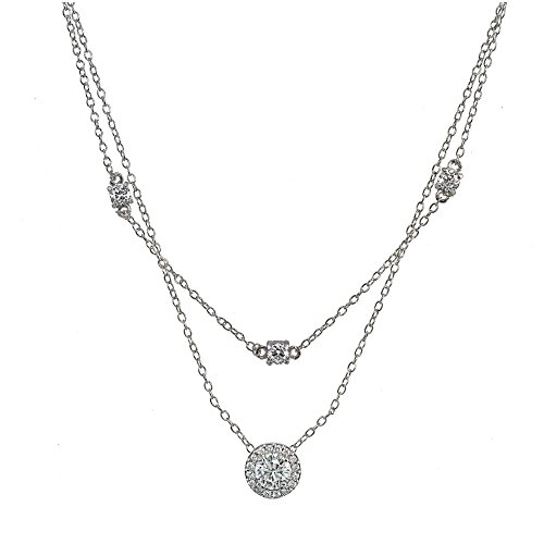 Sterling Silver Cubic Zirconia Round Halo Layered Choker Necklace