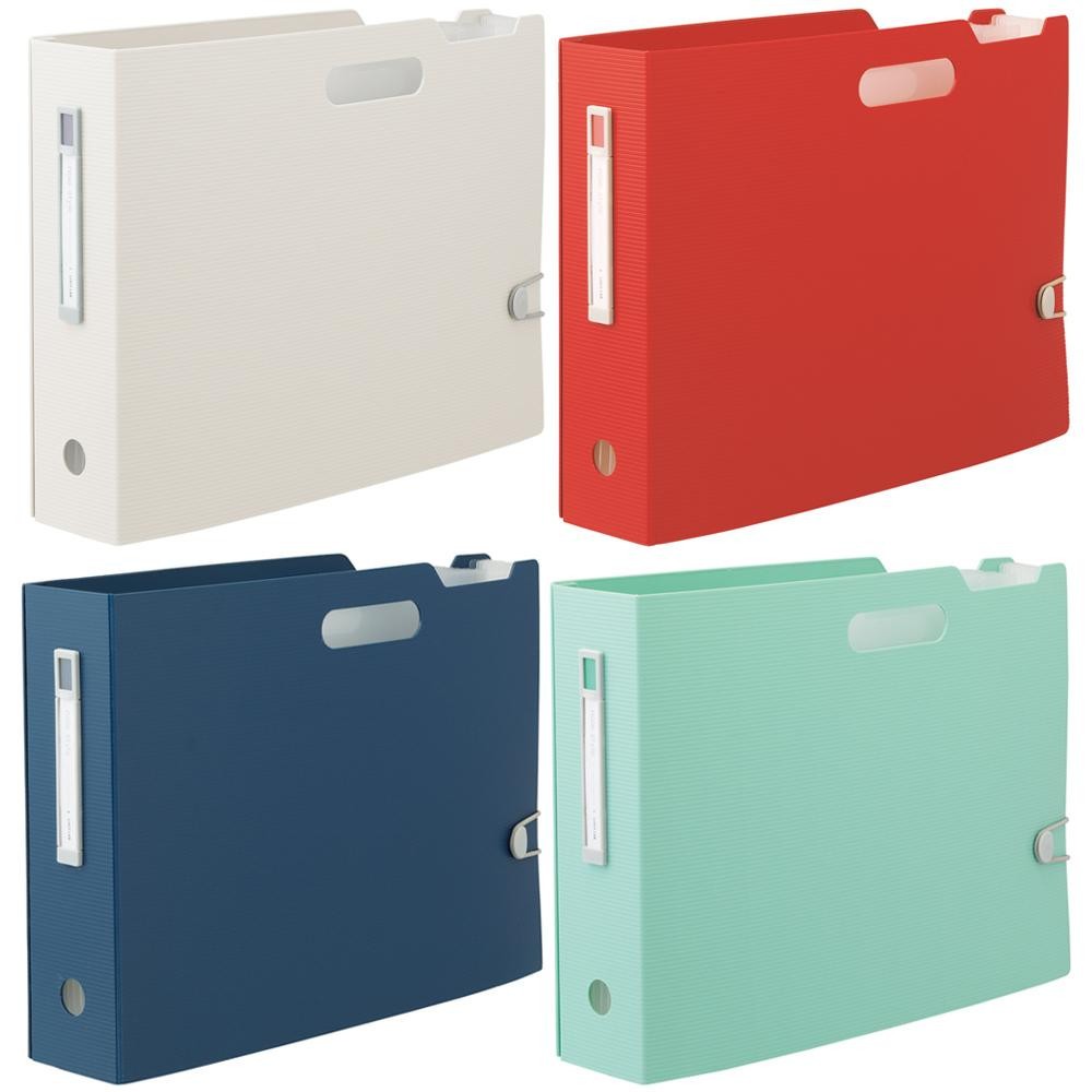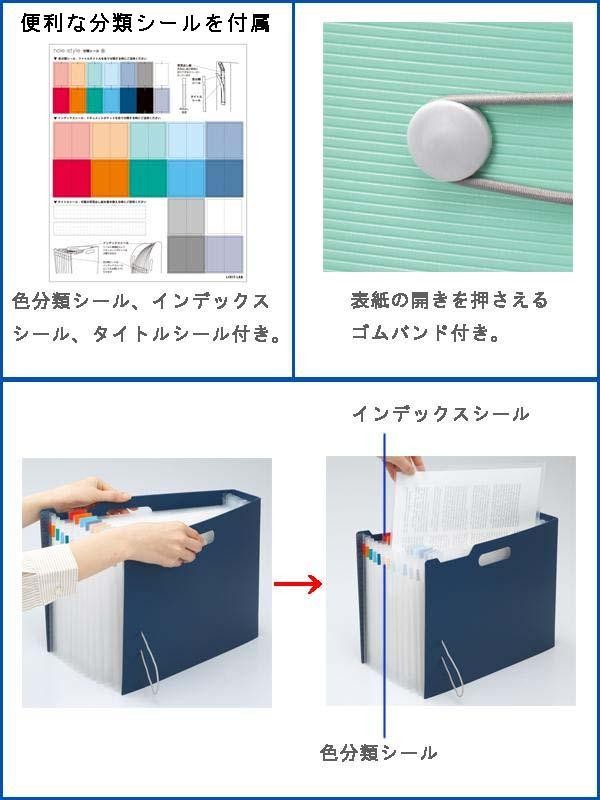 分類・検索性に優れたジャバラタイプのボックスファイルです。卓上では大きく広げて使え、しまう時はスッキリ収納できます。 |