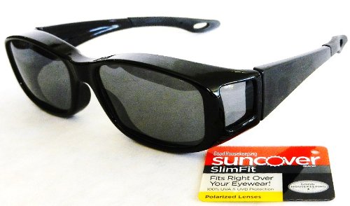 - Feature : Free Micro-suede Cleaning Cloth / Suncover Surround RX Sunglasses Fits Over Glasses / GLARE-FREE, POLARIZED & SHATTER RESISTANT / INNER MEASUREMENTS are 1.5" x5.2" / Good Housekeeping Seal + 100% UVA & UVB Protection- MAX BLOCK PROTECTION