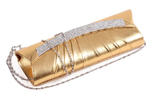 Product Description Perfectly pleated satin fabric gives this chic large clutch the look of a beautiful sparkles with rhinestone accents. The fashion clutch with Rhinestones has a glamorous design and features a smooth satin back panel add a glitzy touch to the overall look. The interior offers just enough room for your most important items and includes a small slide pocket for valuables while a long chain offer versatile carrying options as a hand held clutch, short shoulder bag, or crossbody bag.Dimensions:28.5cm*9.8cm*9cm(11.22"*3.86"*3.54"inches).Long chain Strap 120cm/47.24inches.NOTE:Different people with different measurement,so it may exist 2-3 measurement errors.Hope you will not mind it.Due to monitor variations colors may appear slightly different. 0