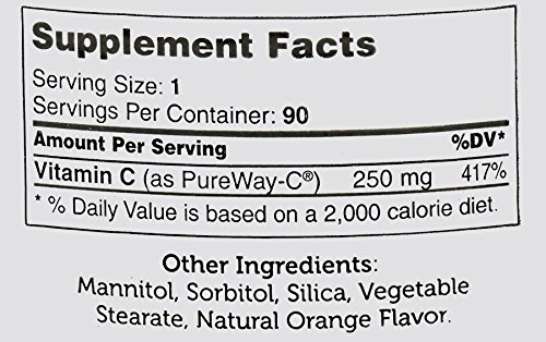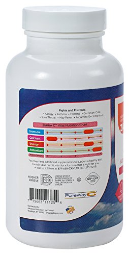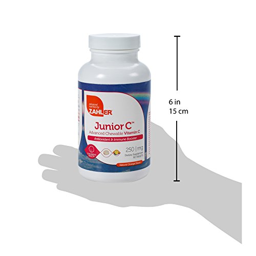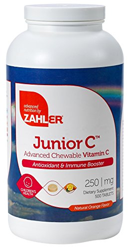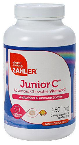 Zahler's chewable vitamin cis an Advanced Antioxidant and Immune booster. Vitamin C chewable is an essential nutrient that functions as a powerful antioxidant. Zahler's vitamin c for kids is water-soluble, which means a continuously replenishing supply is required. Vitamin C is needed to make collagen, the "glue" that strengthens the muscles and blood vessels. Vitamin C also plays an important role in wound healing, acts as a natural antihistamine, and protects against viral and bacterial infections. Junior C contains 250mg of PureWay-C® in a delicious tasting orange flavored tablet.Feature