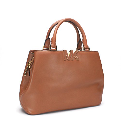 -. Title : MICHAEL Signature MK Leather Satchel, Walnut