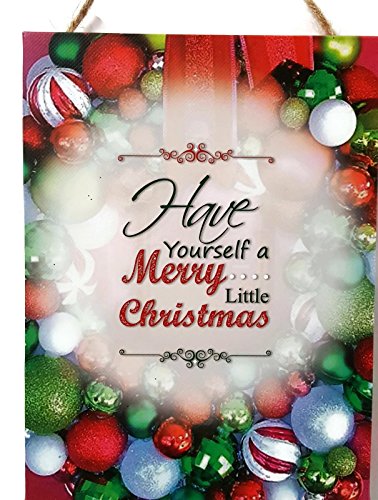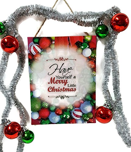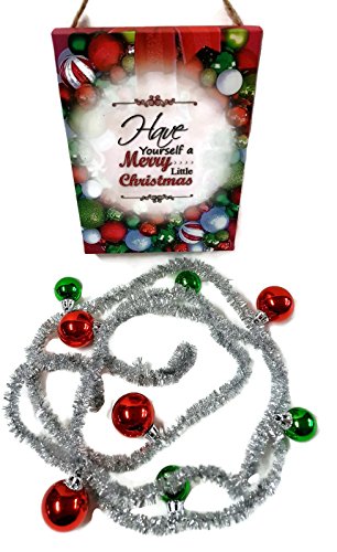 Vintage Ornament Christmas Garland & Canvas Wall Art Gift Set: "Have Yourself a Merry Little Christmas", 2 Pc Decor Bundle