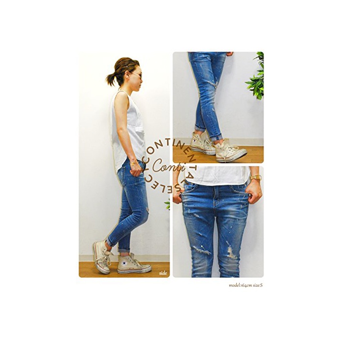 Continental (콘티넨탈) continental 배《고팟치포인토》 페인트 가공 데님 S/M/L/XL 4사이즈 전개 빈티지풍 워시 가공 페인트 페인트