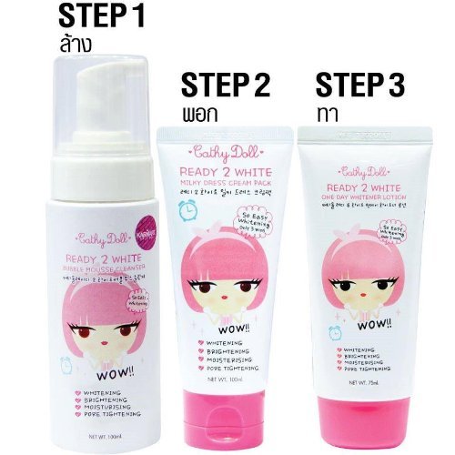 -. Feature : Karmart Cathy Doll Ready 2 White Milky Dress Cream Set Thai 1set / Milky Dress Cream Set / ship from Thailand / 1 set cleanser ,lotion ,Mousse