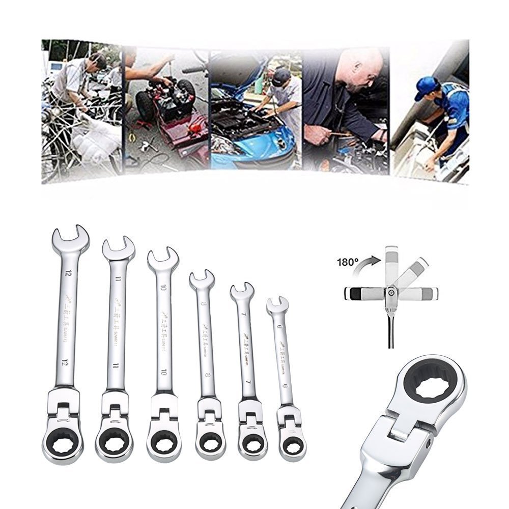 4. Corrosion resistant chromium finished double combination wrench (open and flexible ratchet ring head).