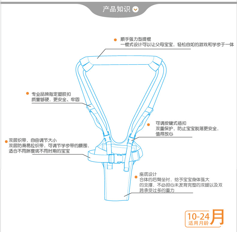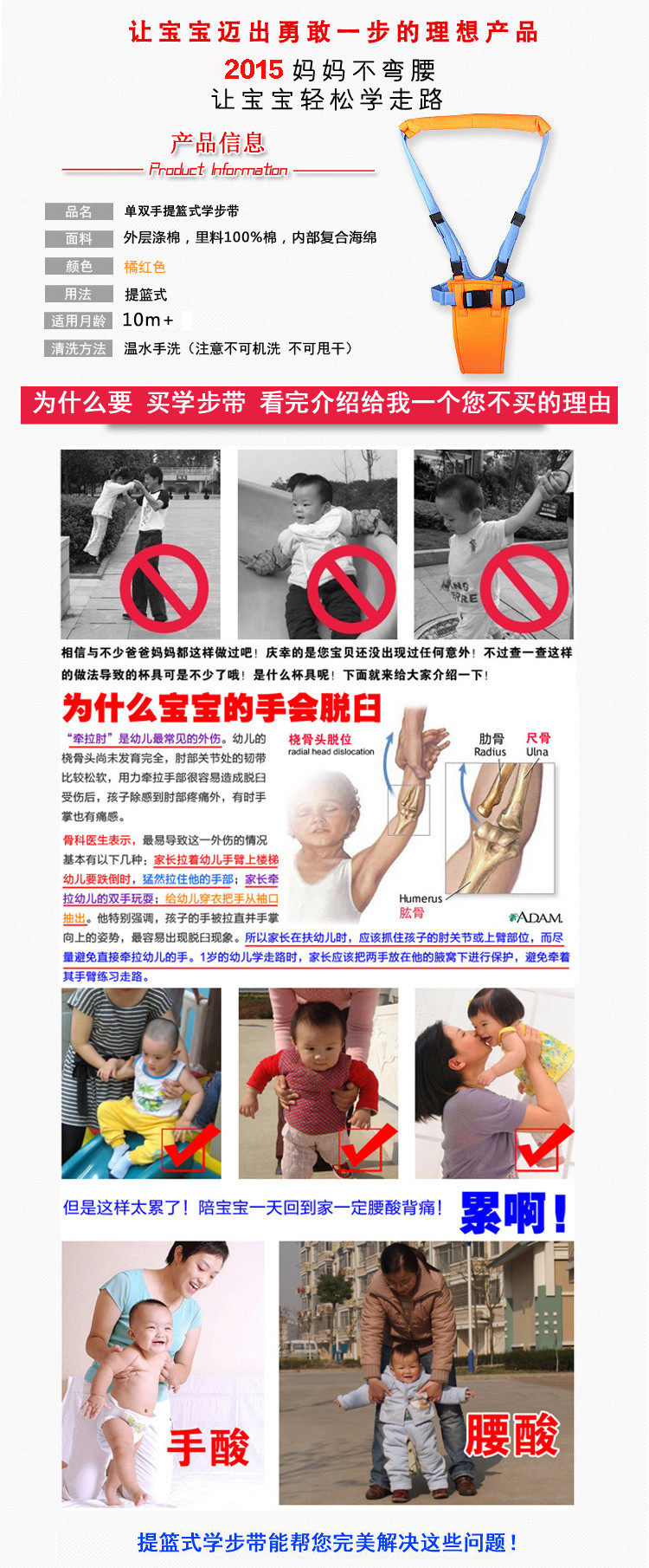 不用弯腰 婴幼儿提篮式学步带 学行带