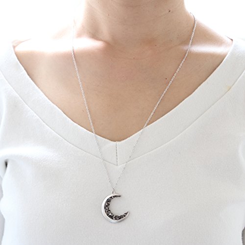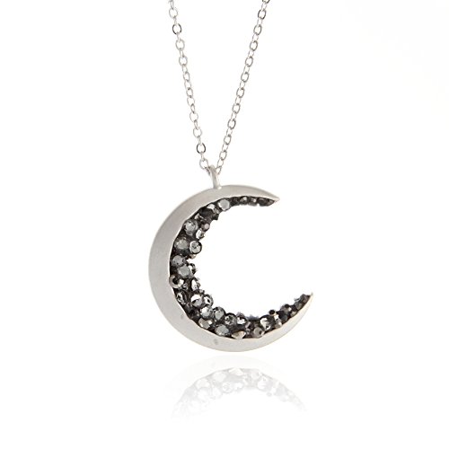 -Crescent moon and black crystals Long necklace