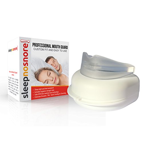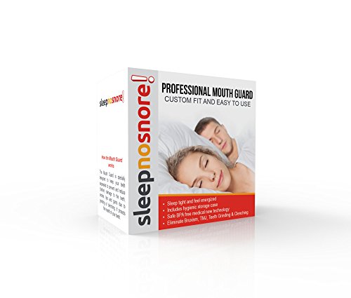 Studio : SleepNoSnore Publisher : SleepNoSnore Binding : Misc. Product Description The SleepNoSnore Mouth Guard is specially designed to keep your teeth separated to prevent and reduce (further) damage to the teeth, arches, lips and gums due to grinding or clenching. The mouthpiece protects the health of your teeth and ensures you get the sleep you need. It is a simple, yet effective solution for bruxism. It takes only a few minutes to custom fit your mouthguard. The mouthguard comes in one size and fits most. The SleepNoSnore Mouth Guard comes with a carrying case, and is easy to clean using a toothbrush with water and soap. Sleep tight tonight! 0