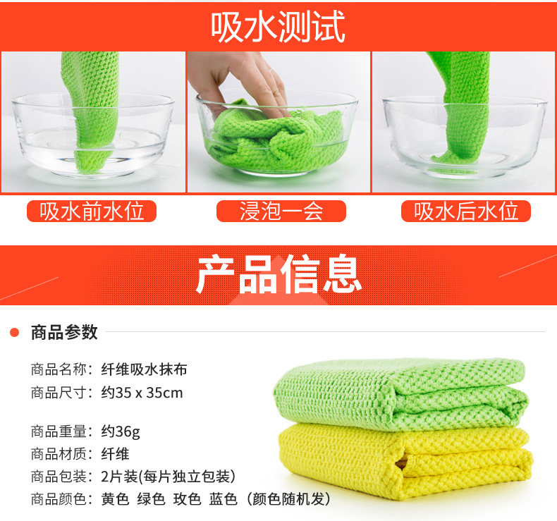 厨房家务洗碗布加厚保洁抹布吸水速干不掉毛清洁毛巾擦桌布2条装