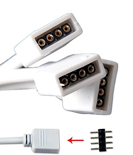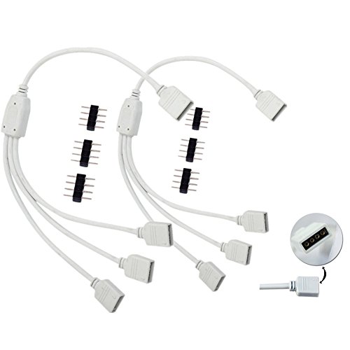 4 Pin LED Splitter, Ltvystore 2Pack White LED Splitter Connector Cable Wire With 6PCS 4Pins for RGB 5050 3528 Strip Ribbon Light (1to3 splitter cable)