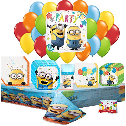-. Feature : 8 Minion Party Lunch Plates, 8 Minion Party Dessert Plates / 8 Minion Party Paper Cups, 1 Minion Party Table Cover / 16 Minion Party Lunch Napkins. 16 Minion Party Beverage Napkins. / 1 Happy Birthday Card / 1 Minion Party 18 Inch Mylar Balloon, 4 Of each color Orange, Blue, Green,Red, and Yellow 11 Inch Latex Balloons