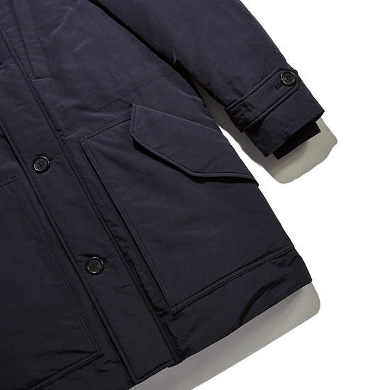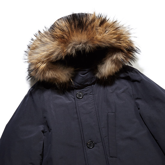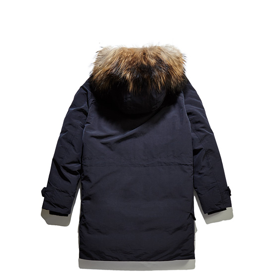 - 매트한 겉감과 천연 라쿤퍼가 돋보이는 남성 후드 다운 점퍼.