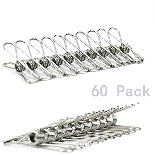 Yarssir Clothes Pins - 60 Packs Wire Clips Multi-purpose Stainless Steel Utility Clips Hooks Clothes Pin for Laundry Clothes, Socks, Scarves or Hanging Photos