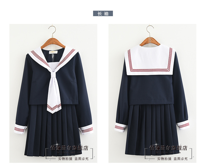 New School Dress Long Sleeve JK School Uniform TOP+Skirt Teen Girls Sailor Suit