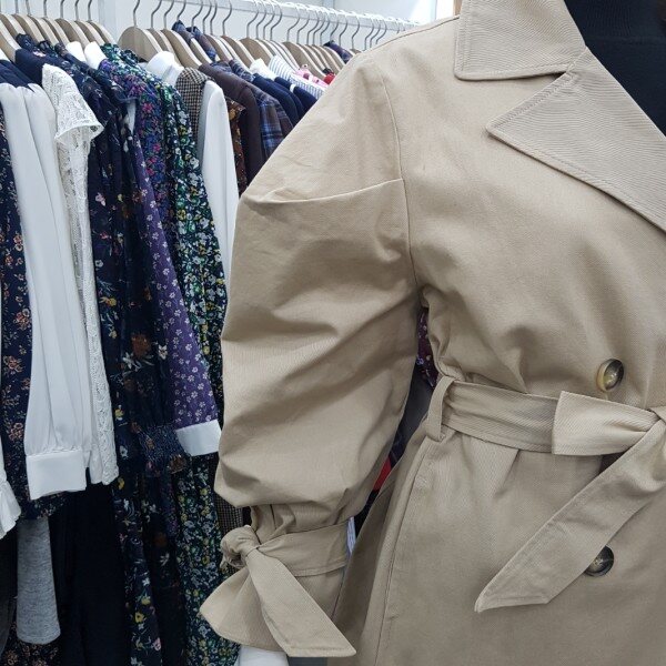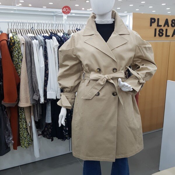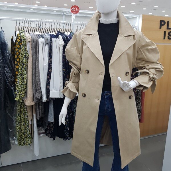소매볼륨트렌치바바리코트에요^^여성스럽고 세련된 트렌치코트에요!!가슴단면약46cm 총기장 약100cm