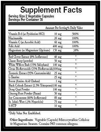 -. Feature : Hormonal changes in many women can cause a number of symp and Natural Transition Menopause supports these with a wide array of vitamins, minerals, botanicals and natural Phytoestrogens / The natural transition of a woman's body during menopause creates the need for a different nutritional balance / Our proP.R.Ietary blend of herbal and nutritional compounds is designed to support the body through this natural change in life. / Phytoestrogens, in the form of red clover, chastetree berry, citrus bioflavonoids, black cohosh, dong quai and soy, are the plant world's version of estrogen / These phytoestrogens are similar to our body's estrogen and may help to aid symp of menopause by adding a natural boost to the body's own estrogen