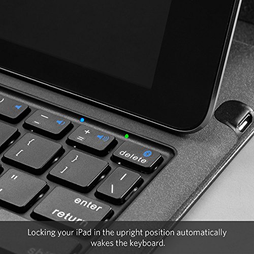 - Feature : Synthetic leather exterior resembles a notebook and contains a comfortable, fast-typing keyboard to fully complement your iPad Air. / Versatile viewing options: iPad Air snaps to a magnetic upright angle designed for typing and media playback or lies flat over the keys for handheld use. / Opening and closing the cover triggers sleep or wake modes. Locking your iPad Air into the upright position automatically wakes the keyboard (once paired via Bluetooth). / Power-saving mode triggered after 10 minutes of inactivity. Category-high battery life of over 6 months between charges (based on 2 hours of use per day). / Package contents: Anker Bluetooth Keyboard Case for iPad Air (not compatible with iPad Air 2), USB charging cable, welcome guide. 18-month warranty, and free lifetime technical support.
