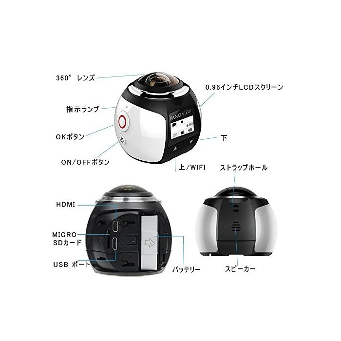 원본상품명: OSEI 360度 パノラマカメラ 1600万素センサ IP67 30m超防水 運記 自車、ライディング、スキ、サフ、ダイビング 想メガネ3DVR用アクション スポツカメラ 空撮に