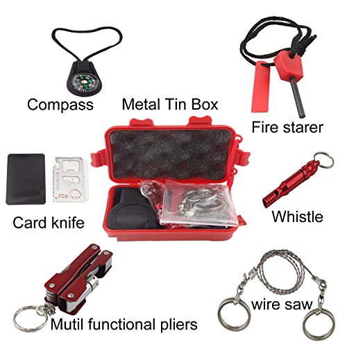 - .This item include compass, fire starter, hand saw, whistle and multi-function pliers tool are packaged in a case.Easy to carry,for all kinds of outdoor emergency.